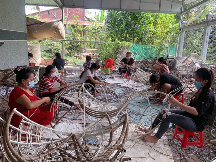 Chị Dân kể, học nghề xong, chị cùng vài chị trong xóm thành lập nhóm lấy hàng về làm đơn lẻ. Sau này, tìm được nguồn kết nối với doanh nghiệp cung cấp hàng để gia công, chị tiếp tục mở rộng thành tổ đan giỏ với 14 thành viên, trong đó có 8 hộ nghèo. Sau khi được đào tạo, các thành viên trong tổ có thu nhập ổn định từ việc gia công các sản phẩm xuất khẩu, trung bình từ 1,5 - 4 triệu đồng/tháng. Có công việc ổn định, chị em tham gia ngày càng nhiều. Đến nay, chị Dân có khoảng 50 - 70 lao động thường xuyên tại xã Hưng Lễ và các vùng lân cận như Thạnh Phú Đông, Hưng Nhượng... trong đó có 30 hộ nghèo.