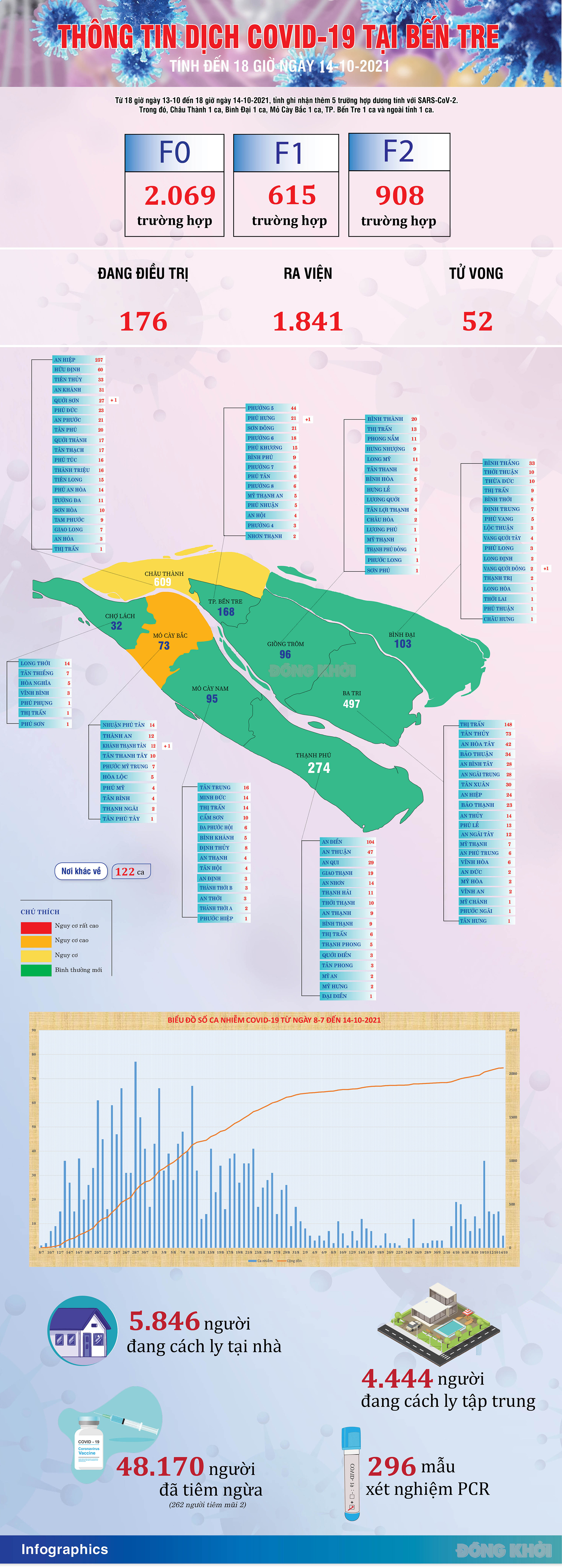[Infographics] Thông tin dịch Covid-19 tỉnh Bến Tre, ngày 14-10-2021