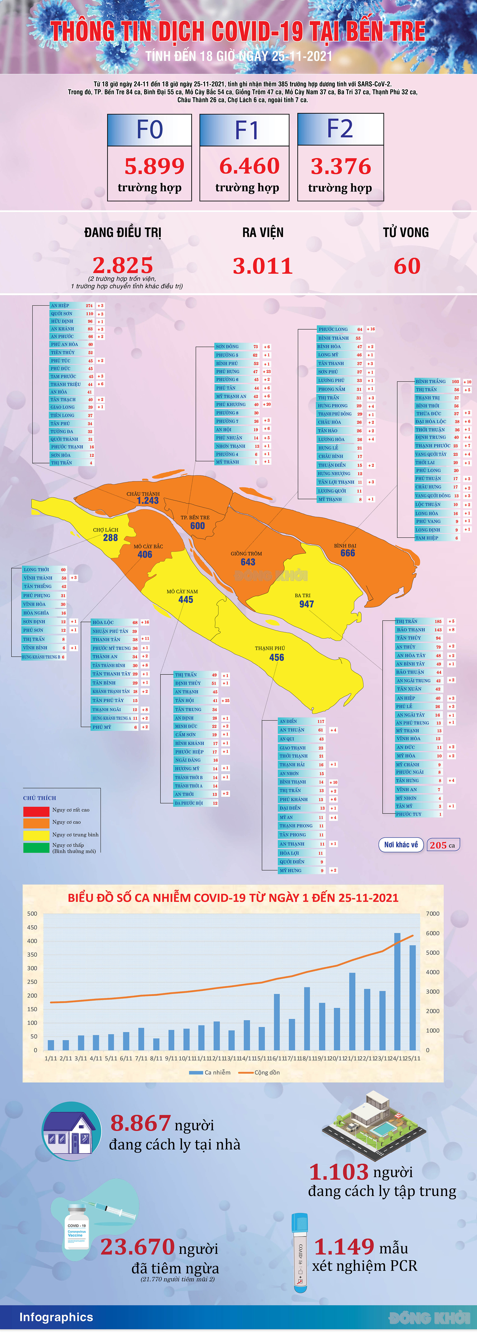 BDK.VN - Từ 18 giờ ngày 24-11 đến 18 giờ ngày 25-11-2021, tỉnh ghi nhận thêm 385 trường hợp dương tính với SARS-CoV-2.