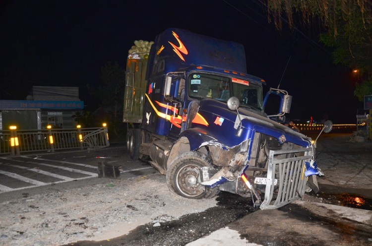 Vào thời điểm trên, anh Võ Minh Khánh (sinh năm - SN 1982, ngụ xã Sơn Nham, huyện Sơn Hà, tỉnh Quảng Ngãi), điều khiển xe container BKS 43C-169.75 lưu thông theo hướng từ huyện Mỏ Cày Bắc về TP. Bến Tre thì bất ngờ mất lái tông vào dải phân cách, băng thẳng sang phần đường bên trái. Cú va chạm làm xe container hư hỏng nặng, không gây thiệt hại về người.