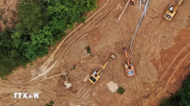 Hiện trường vụ sạt lở đường cao tốc Mai Châu-Đại Bộ ở thành phố Mai Châu, tỉnh Quảng Đông, Trung Quốc, ngày 2-5-2024. (Ảnh: THX/TTXVN)