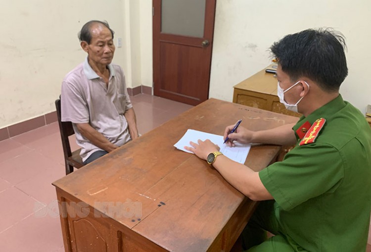 Ông Huỳnh Văn Điều tại cơ quan công an.