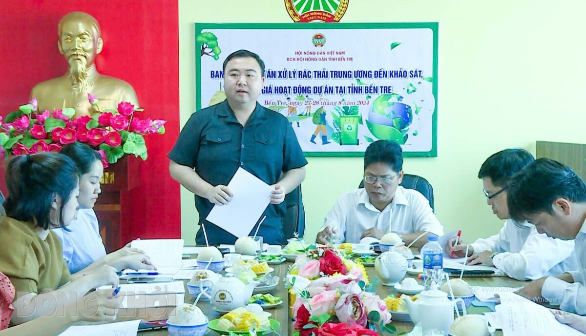 BDK - Ngày 27-8-2024, Trưởng ban Đối ngoại và Hợp tác quốc tế, Trung ương Hội Nông dân (HND) Việt Nam Mai Bắc Mỹ - Giám đốc Ban Quản lý Dự án (DA) cùng đoàn công tác có buổi làm việc với HND tỉnh để đánh giá hoạt động thực hiện “DA Tuyên truyền, vận động nông dân xử lý rác thải tại Việt Nam, góp phần vào nỗ lực giảm phát thải khí nhà kính của cộng đồng quốc tế” tại tỉnh.