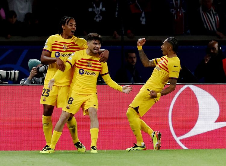 Sau quãng thời gian 20 phút đầu tiên bị lép vế, Barca dần lấy lại thế trận và tạo ra sức ép lên khung thành của PSG. Phút 37, thủ thành Gianluigi Donnarumma mắc sai lầm nghiêm trọng tạo điều kiện để Raphinha ghi bàn mở tỉ số trận đấu.