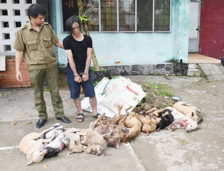Qua làm việc, đối tượng khai tên là Võ Anh Thuận, sinh năm 1985, thường trú tại ấp Phú Hữu, xã Hữu Định, huyên Châu Thành. Thuận khai nhận số chó trên là Thuận chở thuê cho một đối tượng tên Tí đi qua Tiền Giang để tiêu thụ.