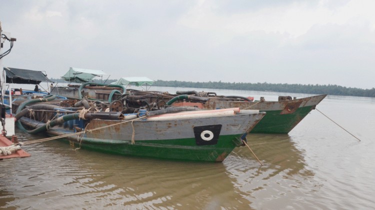 Tại thời điểm bị bắt quả tang, các phương tiện đã hút trộm được gần 37m3 cát.
