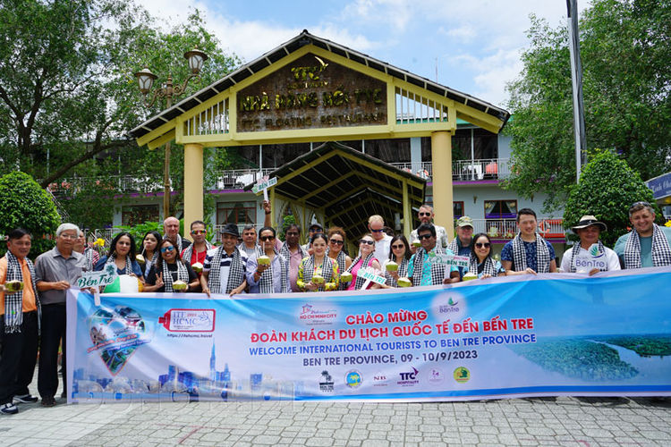 Đoàn farmtrip với 27 lữ hành quốc tế đến từ 15 quốc gia gồm: Nga, Ba Lan, Áo, Ý, Đức, Pháp, Nga, Ấn Độ, Rumani, Anh, Úc cùng hướng dẫn viên và đại diện Sở Du lịch TP. Hồ Chí Minh đã tham gia chuyến farmtrip, trải nghiệm tour Nam TP. Bến Tre với các sản phẩm như: Đi tàu trên sông, tham quan lò kẹo dừa truyền thống, dệt chiếu Nhơn Thạnh, trải nghiệm đi đò chèo trong rạch dừa nước…