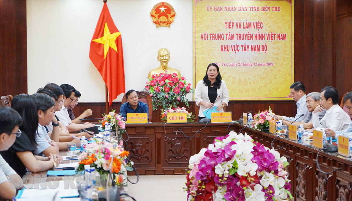 BDK.VN - Ngày 21-12-2024, Phó chủ tịch UBND tỉnh Nguyễn Thị Bé Mười chủ trì buổi làm việc giữa UBND tỉnh với Trung tâm Truyền hình Việt Nam khu vực Tây Nam Bộ (VTV Tây Nam Bộ) để đánh giá kết quả hợp tác truyền thông (2022-2024) và đề xuất tăng cường hợp tác năm 2025 và những năm tiếp theo. Đại diện một số sở ban ngành, đơn vị liên quan cùng tham dự.