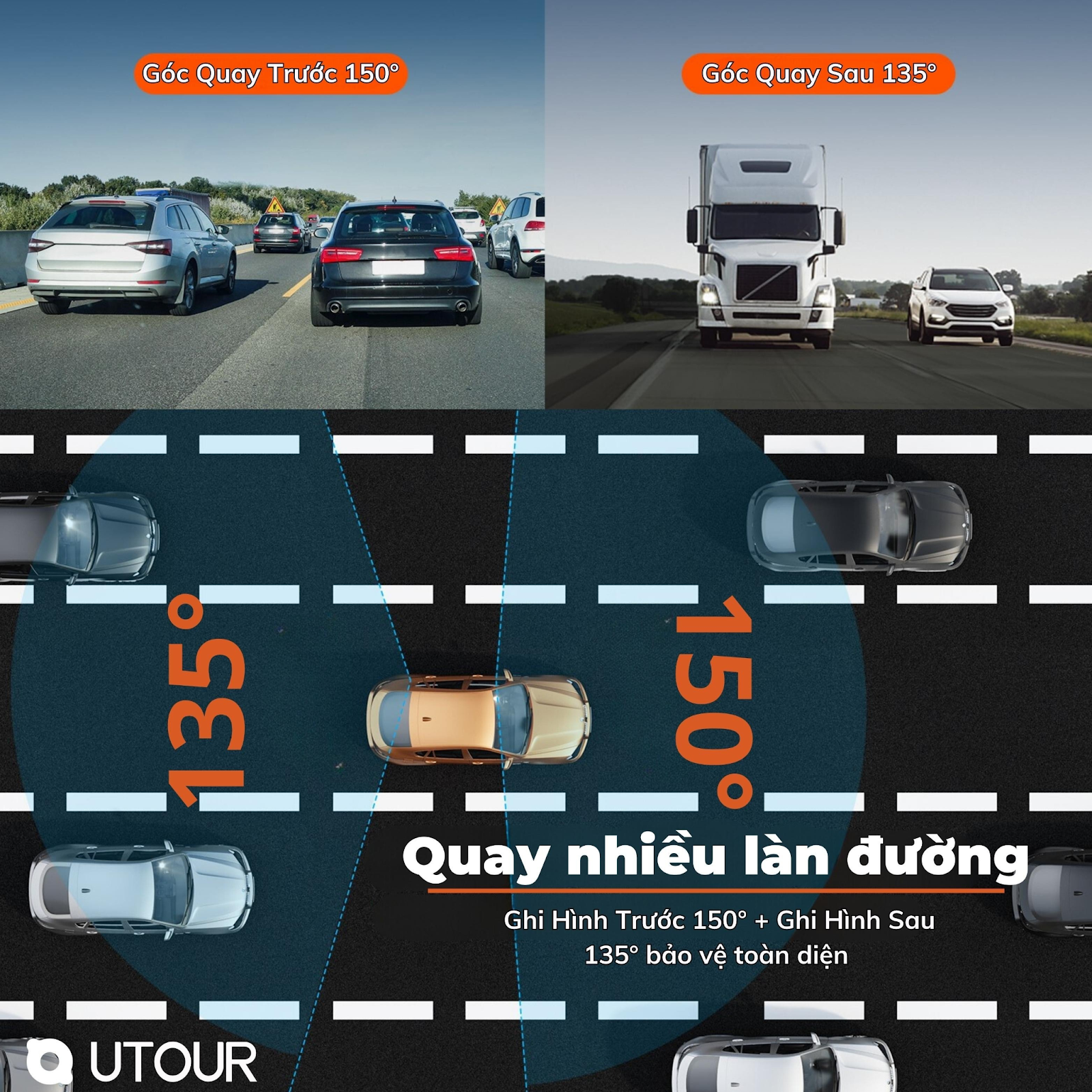 Camera hành trình Utour C2L cung cấp các video ghi hình sắc nét với độ phân giải lên tới 4K. Thiết bị này có góc ghi hình rộng 135° nên có thể quay lại toàn cảnh không gian phía trước và sau xe mà không bỏ sót bất kỳ chi tiết nào.