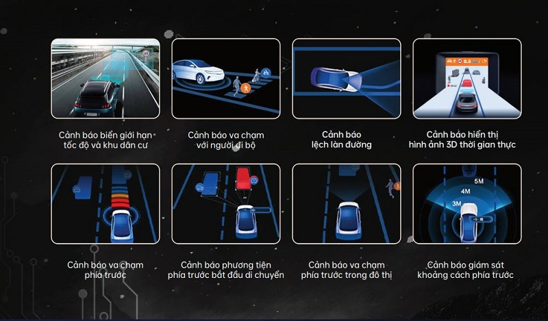 Cảnh báo va chạm: Tính năng này sử dụng camera liên tục soi quét phía trước đầu xe thu thập thông tin về khoảng cách và tín hiệu tốc độ, từ đó tính toán ra thời gian đâm va thực tế giữa hai xe, đưa ra cảnh báo sớm có độ chính xác cao. Khi nhận thấy nguy cơ, sẽ phát tín hiệu cảnh báo sớm 3 giây trước khi vụ đâm va có thể xảy ra.