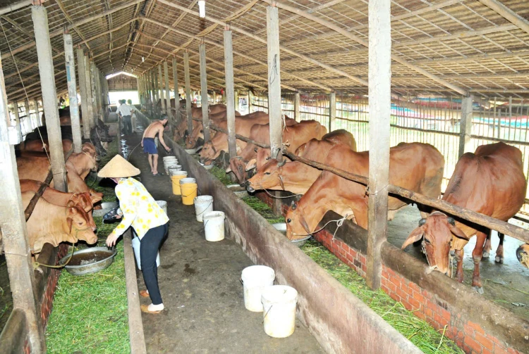 Mô hình chăn nuôi bò sinh sản tại ấp Mỹ Quí, xã Tân Xuân, huyện Ba Tri.