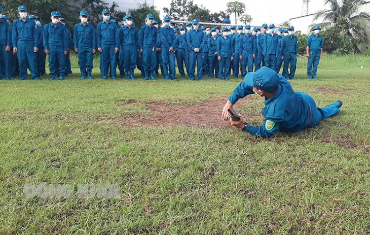 Chỉ huy trưởng Ban Chỉ huy Quân sự xã An Khánh Phạm Quốc Vũ lên lớp huấn luyện cho đối tượng dân quân năm thứ nhất.