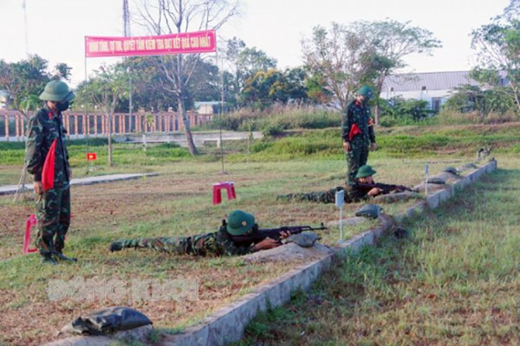 Tổ chức bắn phân đoạn 1 mục tiêu bia số 4 bài 01AK cho chiến sĩ mới. Ảnh: Đặng Thạch