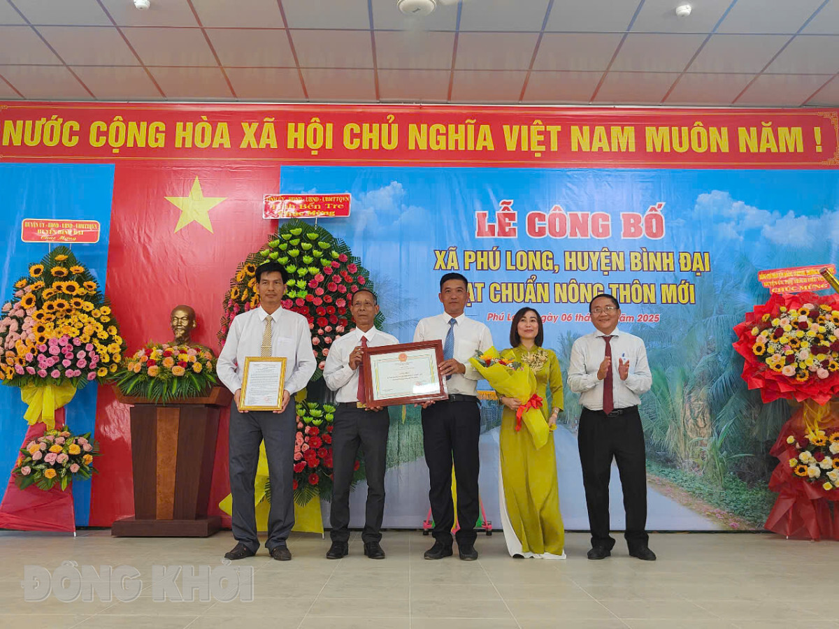 BDK.VN - UBND huyện Bình Đại vừa tổ chức lễ công bố xã Phú Long đạt chuẩn xã nông thôn mới (NTM). Chủ nhiệm Ủy ban Kiểm tra Tỉnh ủy Nguyễn Hải Châu, Giám đốc Sở Nông nghiệp và Môi trường Đoàn Văn Đảnh, Phó trưởng ban Thường trực Ban Tổ chức Tỉnh ủy Nguyễn Văn Dũng đến dự.