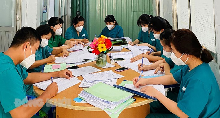 Bệnh viện dã chiến bàn kế hoạch chăm sóc bệnh nhân. Ảnh: CTV
