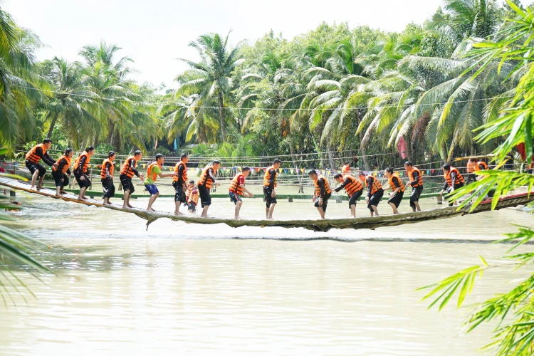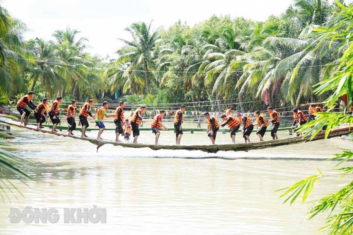 Trò chơi tập thể thu hút du khách tại điểm du lịch Lan Vương (TP. Bến Tre). Ảnh: Thanh Đồng