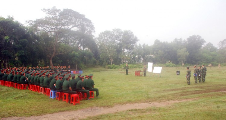 Giờ thông qua giáo án huấn luyện của cán bộ, chiến sĩ Trung đoàn Bộ binh khung thường trực 895. Ảnh: Đặng Thạch