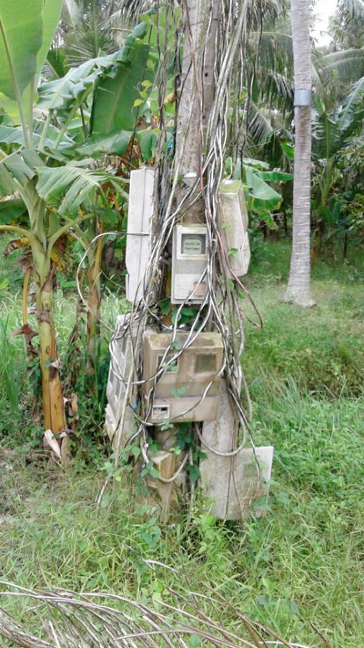 dây điện tại đây thì chằng chịt và thấp, còn đồng hồ điện thì được lắp chung