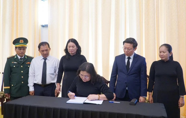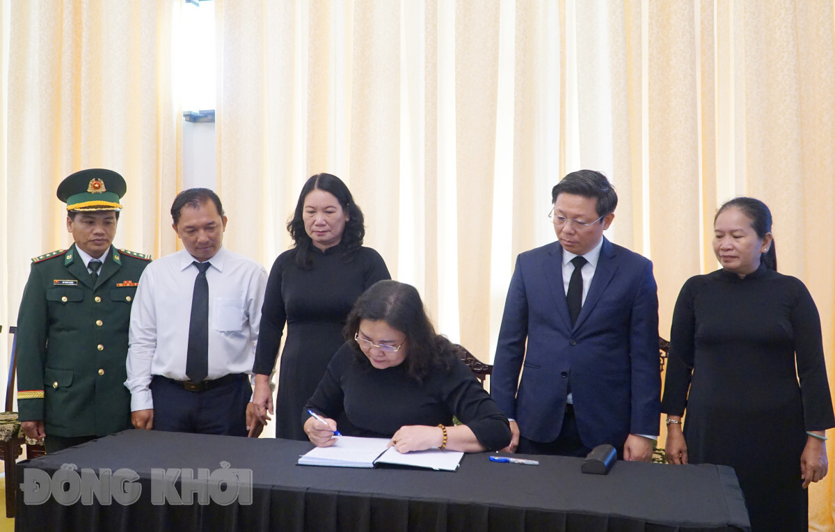 Bí thư Tỉnh ủy - Chủ tịch HĐND tỉnh Hồ Thị Hoàng Yến ghi vào sổ tang.