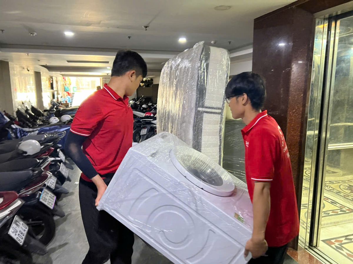 Nhân viên Taxi tải Thành Hưng thực hiện chuyển dọn đồ đạc nặng.