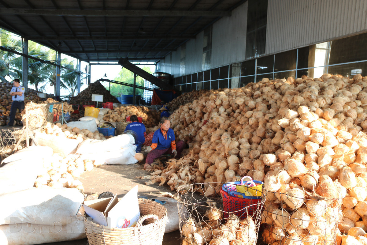 Điểm tập kết dừa hột cho công nhân sơ chế đưa vào chế biến tại Công ty cổ phần Đầu tư dừa Bến Tre (Beinco), xã Thanh Tân, huyện Mỏ Cày Bắc (T.Thảo)