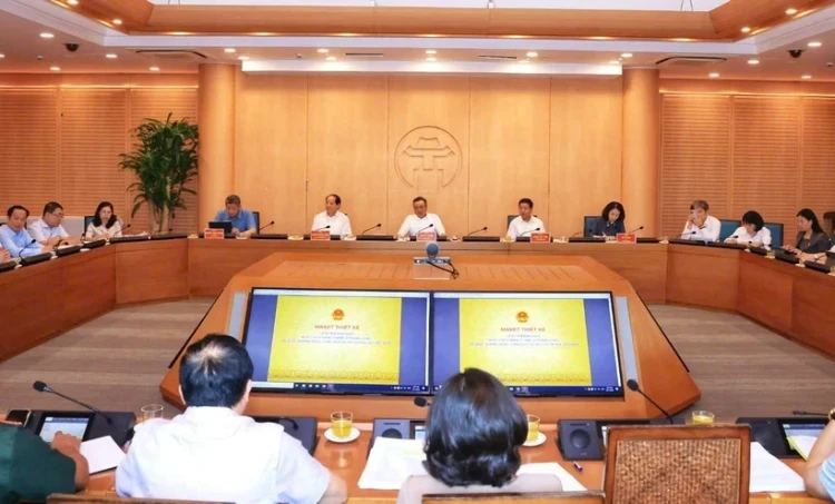 Chủ tịch UBND thành phố Hà Nội Trần Sỹ Thanh chủ trì phiên họp Ban Tổ chức Lễ kỷ niệm 80 năm Cách mạng tháng 8 (19-8-1945 – 19-8-2025) và Quốc khánh 2-9 (2-9-1945 – 2-9-2025) của thành phố. (Ảnh: PV/Vietnam+)
