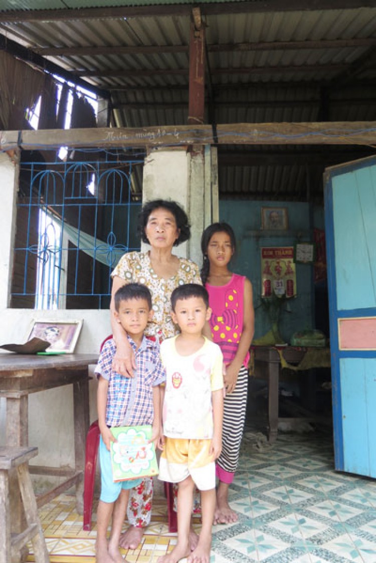 tháng qua, bà và các cháu sống nhờ vào số tiền làm thuê ít ỏi của con trai bà. Chúng tôi đến nhà chỉ thấy ba chị em Nhi, Lâm, Hùng, còn