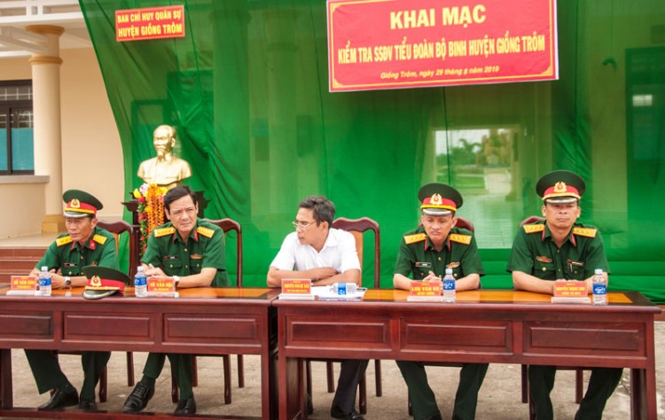 Đại tá Võ Văn Hội - Phó chỉ huy trưởng, Tham mưu trưởng Bộ CHQS tỉnh, Chủ tịch UBND huyện Giồng Trôm Nguyễn Văn Bé Sáu, Thượng tá Lưu Văn Vũ - Chỉ huy trưởng Ban CHQS huyện và đại lãnh đạo các xã, thị trấn tham dự.