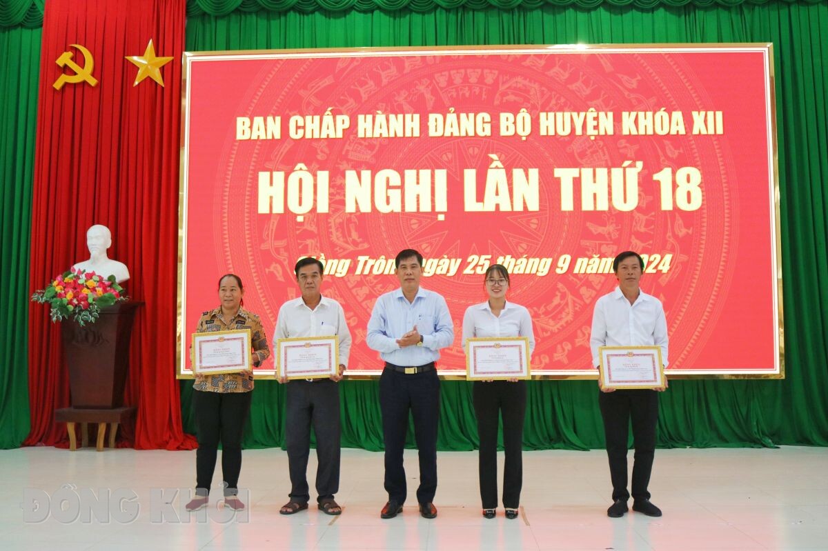 Bí thư Huyện ủy Nguyễn Thái Bình trao bằng khen của Tỉnh ủy cho đại diện các chi bộ đạt thành tích.