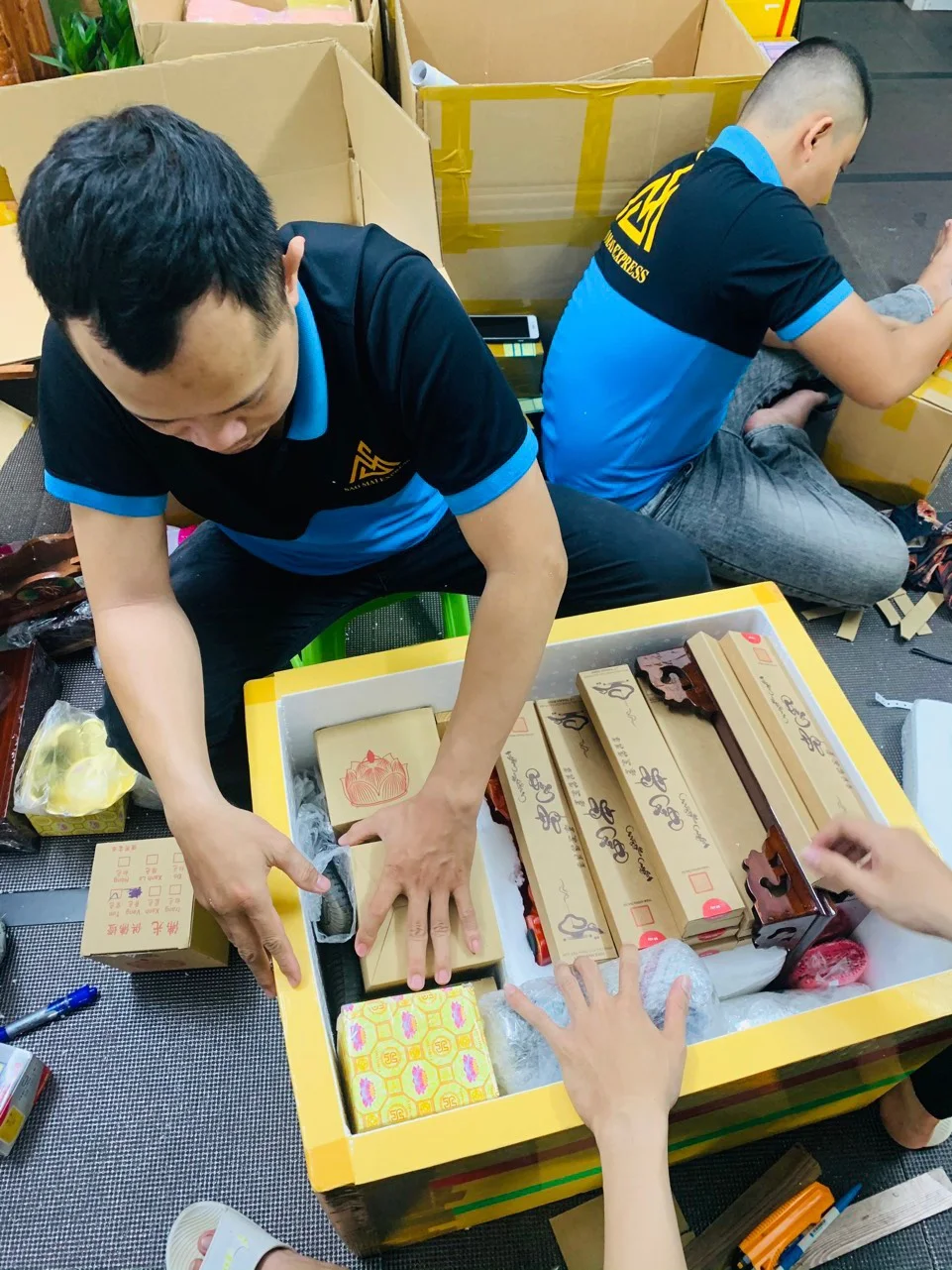 Thực hiện đóng gói và đóng thùng hàng