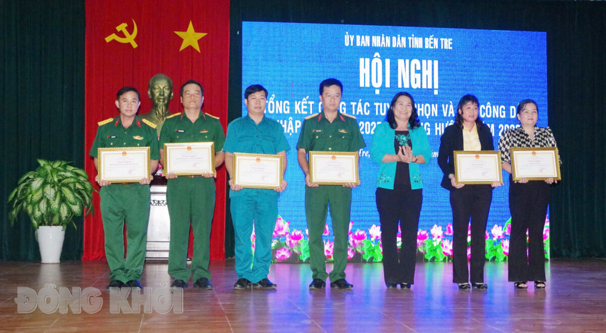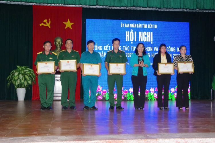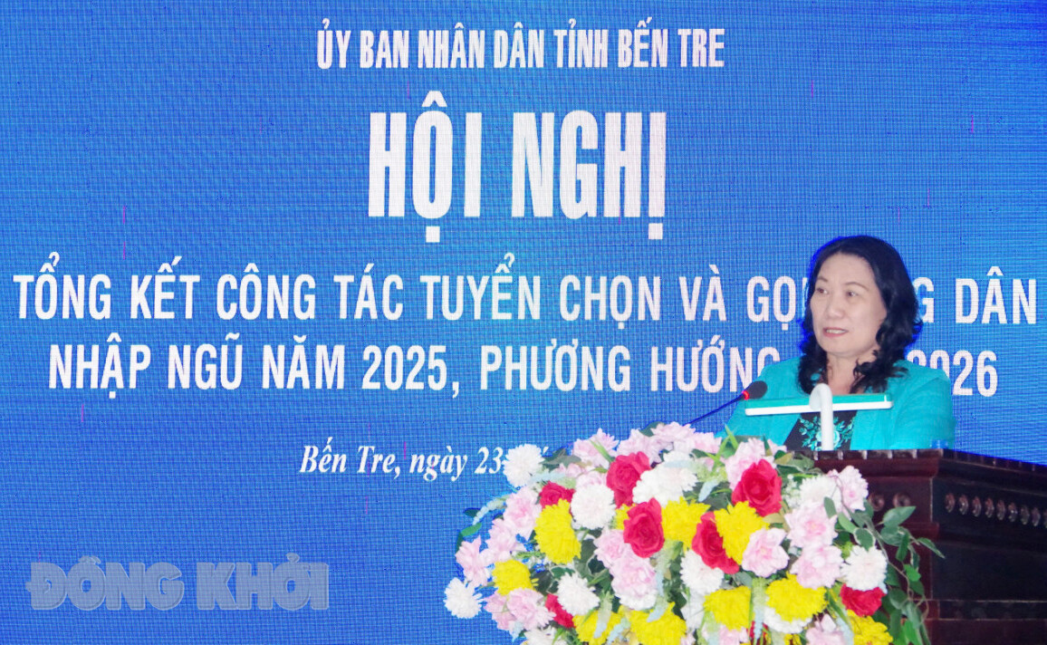 BDK.VN - Chiều 23-5-2025, UBND tỉnh tổ chức hội nghị tổng kết công tác tuyển chọn và gọi công dân nhập ngũ năm 2025, triển khai các nhiệm vụ, giải pháp năm 2026. Phó chủ tịch UBND tỉnh Nguyễn Thị Bé Mười chủ trì hội nghị. Cùng tham dự có Đại tá Nguyễn Thanh Xuân - Phó tham mưu trưởng Bộ Chỉ huy Quân sự (CHQS) tỉnh, lãnh đạo các sở, ngành, đoàn thể tỉnh, các huyện, thành phố.
