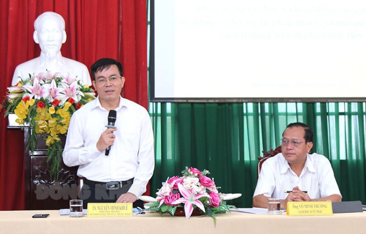 Tiến sĩ Nguyễn Minh Khuê đánh giá cao các tham luận của các ngành chức năng tỉnh, ghi nhận những đề xuất, kiến nghị của đại biểu. Qua đó, sẽ tổng hợp báo cáo trình Bộ Tư pháp.