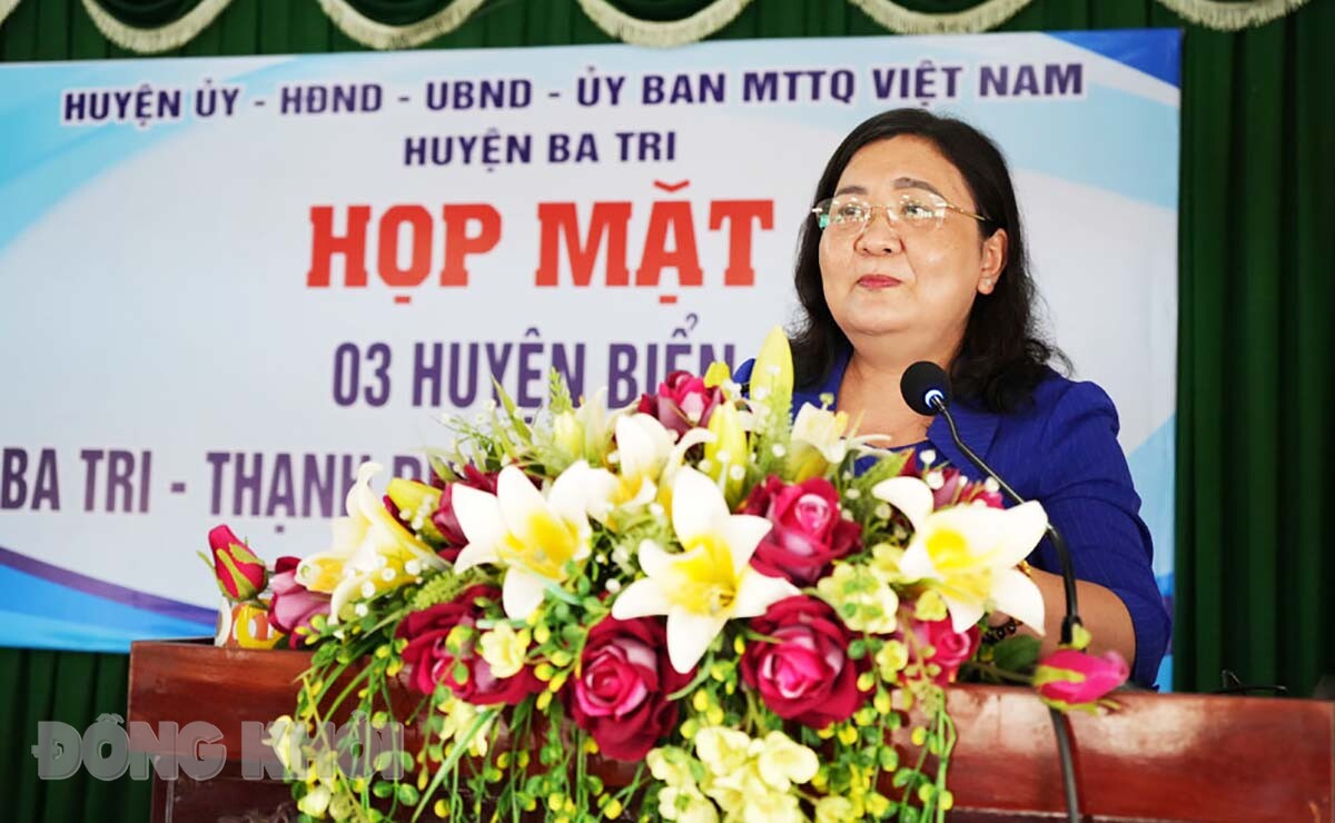 Phát biểu tại buổi họp mặt, Quyền Bí thư Tỉnh ủy - Chủ tịch HĐND tỉnh Hồ Thị Hoàng Yến ghi nhận, biểu dương những kết quả đạt được của 3 huyện. Trong thời gian tới, Quyền Bí thư Tỉnh ủy - Chủ tịch HĐND tỉnh Hồ Thị Hoàng Yến yêu cầu 3 huyện cần tập trung thực hiện một số nhiệm vụ trọng tâm như: Tiếp tục duy trì, đồng thời nghiên cứu làm phong phú thêm nội dung họp mặt, vun đắp, thắt chặt hơn nữa mối quan hệ đoàn kết, hỗ trợ vượt qua khó khăn, thách thức, phát huy tối đa tiềm năng, lợi thế của từng địa phương, thực hiện thắng lợi nghị quyết của các huyện và góp sức thực hiện thắng lợi Nghị quyết của Tỉnh ủy và Nghị quyết Đại hội đại biểu Đảng bộ tỉnh lần thứ XI.