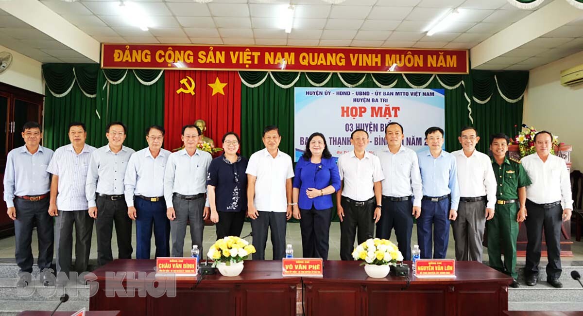 BDK.VN - Ngày 24-8-2024, Huyện ủy, HĐND, UBND, Ủy ban MTTQ Việt Nam huyện Ba Tri tổ chức họp mặt 3 huyện biển Ba Tri - Thạnh Phú - Bình Đại năm 2024. Bí thư Huyện ủy Ba Tri Võ Văn Phê, Bí thư Huyện ủy Bình Đại Nguyễn Văn Lớn, Bí thư Huyện ủy Thạnh Phú Châu Văn Bình chủ trì buổi họp mặt.