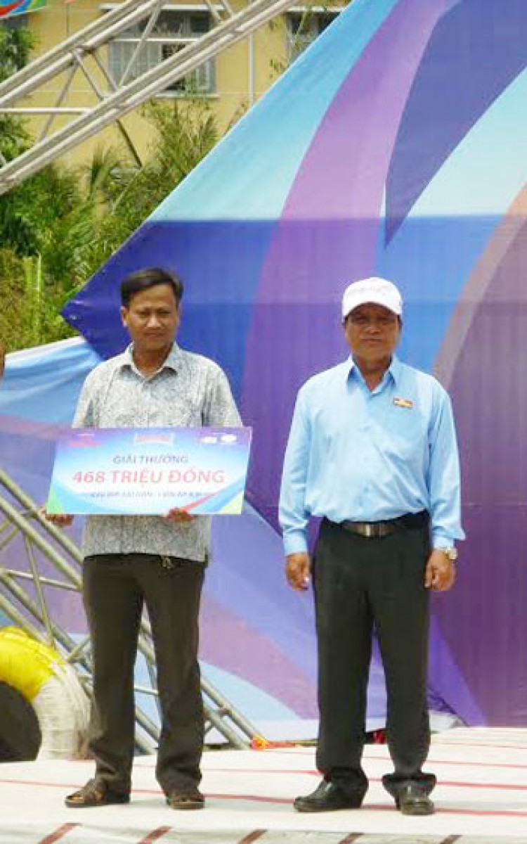 | Đội Hưng Lễ nhận phần thưởng tượng trưng 468 triệu đồng. |