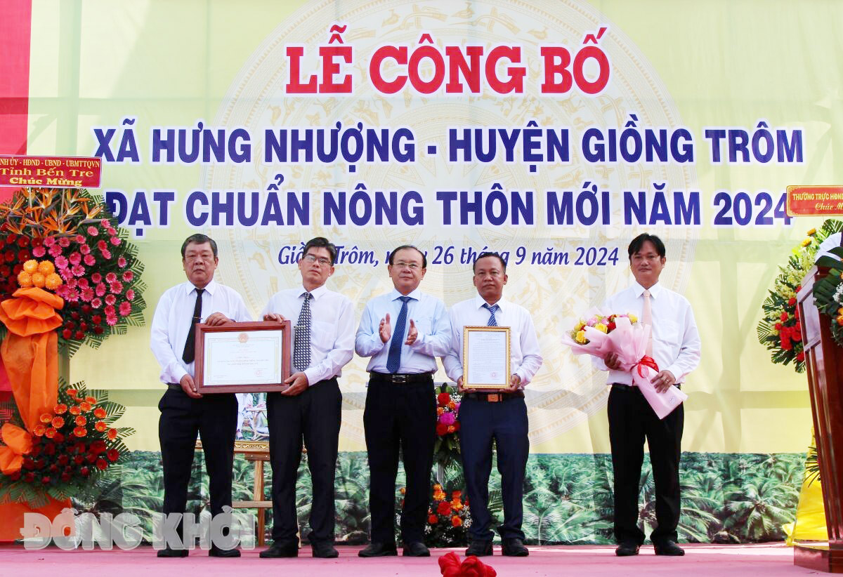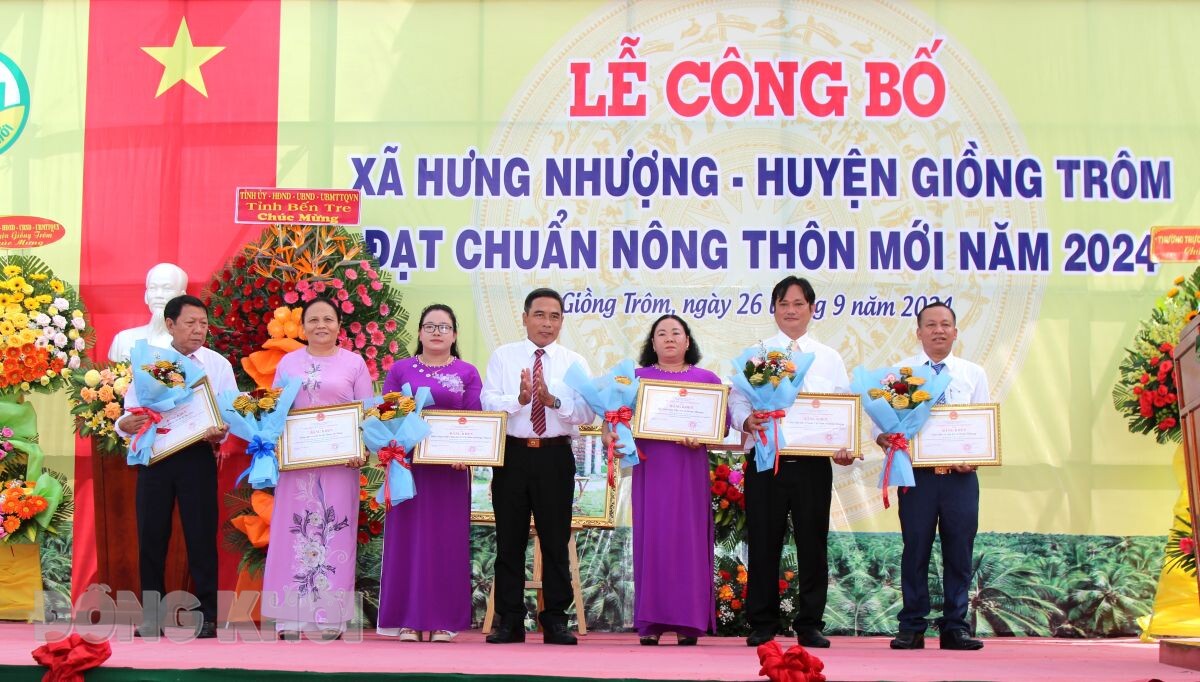 Dịp này, UBND tỉnh, UBND huyện Giồng Trôm, UBND xã Hưng Nhượng tặng nhiều bằng khen, giấy khen cho các tập thể, cá nhân có nhiều thành tích đóng góp xây dựng xã NTM.