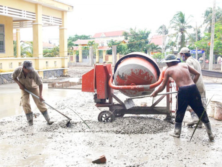 | Đổ bê-tông sân đường nội bộ Trụ sở UBND xã góp phần đổi mới diện mạo nông thôn Hưng Nhượng. |