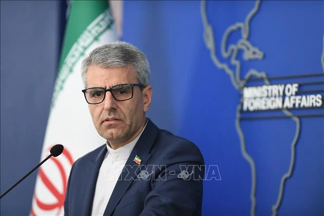 Người phát ngôn Bộ Ngoại giao Iran Esmail Baghaei phát biểu trong một cuộc họp báo ở Tehran. Ảnh: THX/TTXVN