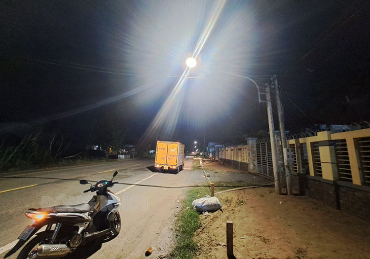 Hệ thống đèn chiếu sáng đường huyện 173 đã được lắp tạm. Ảnh: Hữu Hiệp