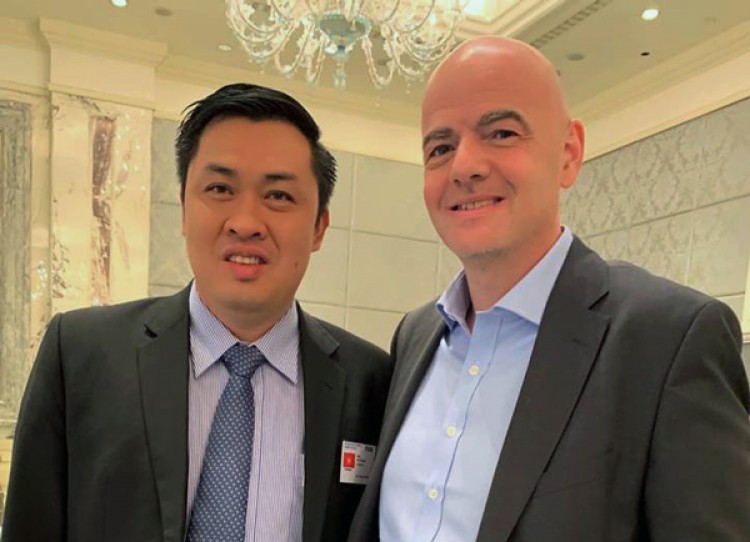 Phó chủ tịch VFF Cao Văn Chóng gặp gỡ Chủ tịch FIFA Gianni Infantino tại Hội nghị. Ảnh: VFF