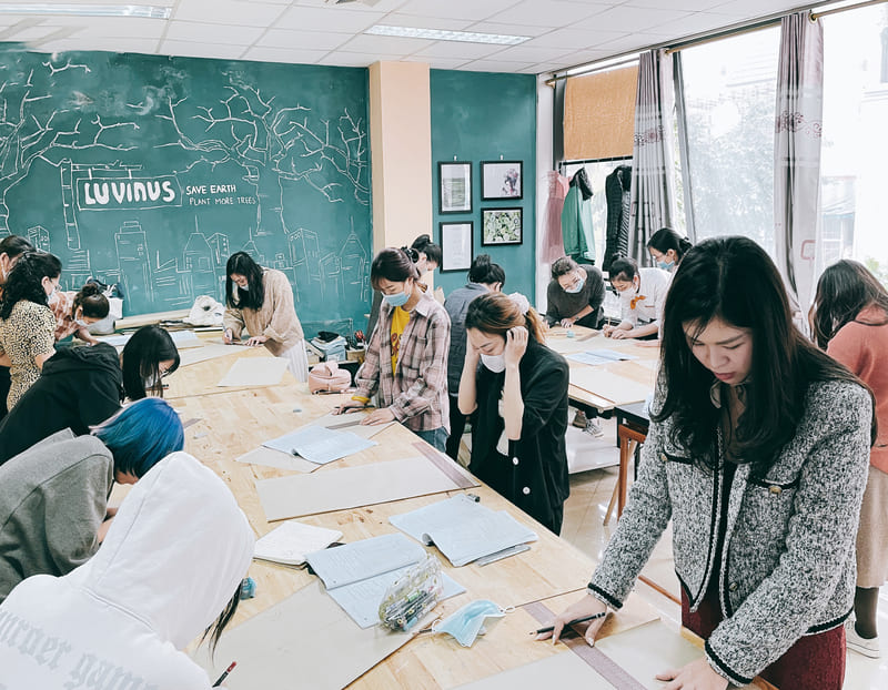 Học viên khi tham gia khóa học tại Luvinus được tương tác trao đổi với giảng viên ngay tại lớp để thực hành và thảo luận về sản phẩm. Chính sự thân thiện, gần gũi và nhiệt huyết của đội ngũ giảng viên, không gian lớp học đầy nghệ thuật đã truyền cảm hứng đam mê cho các học viên. Mỗi lớp học tại đây chỉ giới hạn 12 học viên/ lớp và được trang bị đầy đủ tài liệu, dụng cụ học tập. Cùng với đó kho video, thư viện trực tuyến miễn phí giúp bổ trợ kiến thức cho học viên trong và sau khóa học.