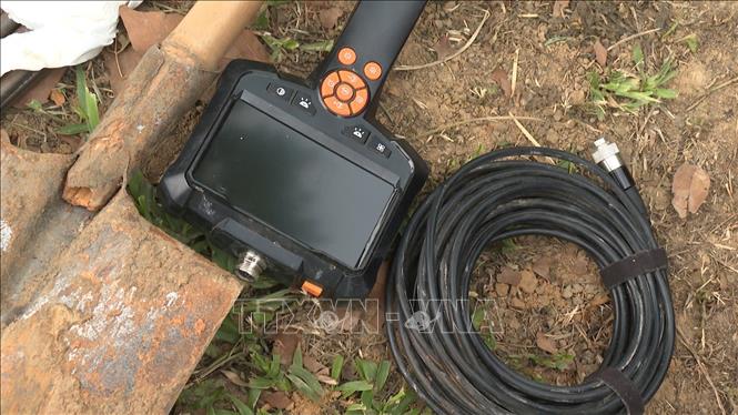 Bộ dụng cụ thăm dò gồm 1 cây săm bằng kim loại chuyên dùng săn tìm đồ cổ và máy gắn thiết bị cảm ứng dò tìm kim loại. Ảnh: TTXVN phát