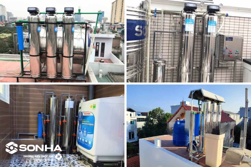Hình ảnh lắp đặt hệ thống lọc nước đầu nguồn tại các hộ gia đình.