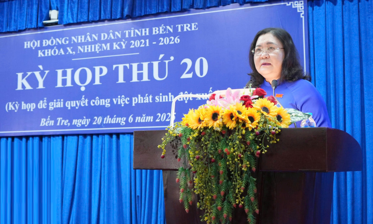 Bí thư Tỉnh ủy - Chủ tịch HĐND tỉnh Hồ Thị Hoàng Yến cho rằng, đây là kỳ họp cuối trên danh nghĩa HĐND tỉnh Bến Tre; từ ngày 1-7-2025 sẽ là HĐND tỉnh Vĩnh Long. Bí thư Tỉnh ủy - Chủ tịch HĐND tỉnh rất mong các vị đại biểu HĐND tỉnh tiếp tục phát huy vai trò, trách nhiệm, làm tốt chức năng, nhiệm vụ đại biểu HĐND tỉnh trong công tác giám sát cũng như trong quyết nghị những vấn đề phát triển kinh tế - xã hội, an ninh - quốc phòng ở tỉnh Vĩnh Long với tầm nhìn và không gian phát triển mới hơn. Đồng thời, Bí thư Tỉnh ủy - Chủ tịch HĐND tỉnh cũng kết thúc vai trò Chủ tịch HĐND tỉnh, trân trọng cảm ơn Ban Thường vụ Tỉnh ủy, Thường trực HĐND, các Ban HĐND tỉnh, Thường trực UBND tỉnh, các Sở ngành; Thường trực HĐND huyện, thành phố, xã, phường, thị trấn; quý vị đại biểu HĐND tỉnh trên địa bàn tỉnh, quý bà con cử tri tỉnh nhà đã quan tâm tin tưởng giao trọng trách quan trọng này, mặc dù chưa thực hiện hết kỳ vọng quý bà con cử tri gởi gấm nhưng trong nhiệm kỳ qua cũng đã đạt được những kết quả quan trọng, gắn kết được tiếng nói của cử tri với chính quyền, để chính quyền quan tâm giải quyết các kiến nghị chính đáng của đông đảo cử tri tỉnh nhà, góp phần đạt những thành tựu về kinh tế - xã hội, an ninh quốc phòng trên địa bàn tỉnh Bến Tre.
