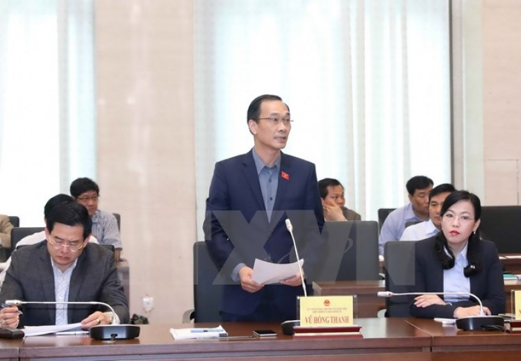 Chủ nhiệm Ủy ban Kinh tế của Quốc hội Vũ Hồng Thanh trình bày báo cáo tại hội nghị. (Ảnh: Phương Hoa/TTXVN) |