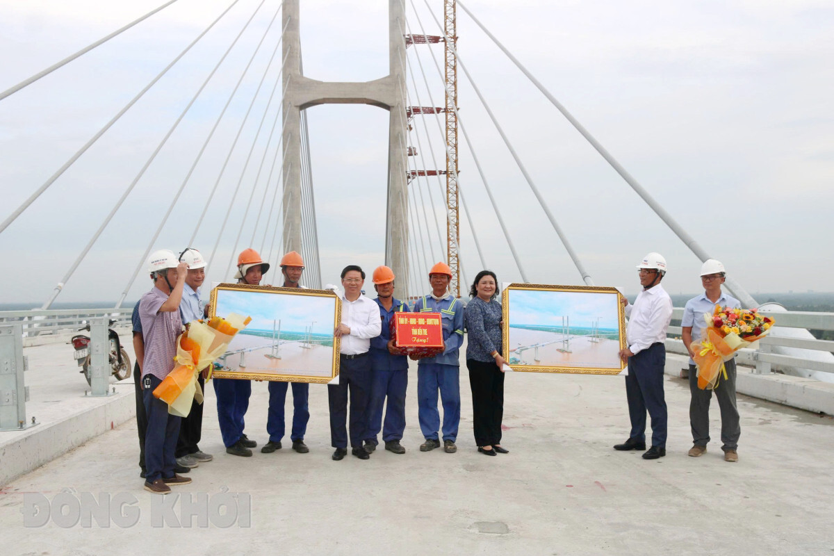 Lãnh đạo tỉnh đã đến thăm và tặng quà cho đội ngũ kỹ sư, công nhân đang thi công trên công trường dự án cầu Rạch Miễu 2 trước thềm sáp nhập tỉnh.
