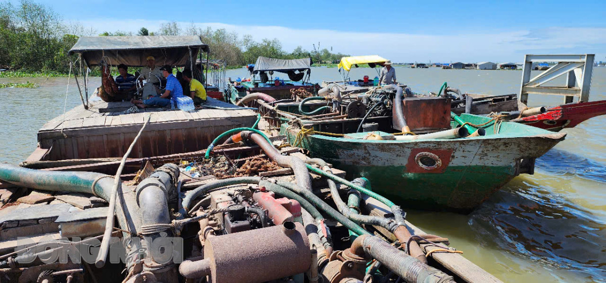 Cụ thể, sáng 25-12-2024, Công an xã Phú Túc, huyện Châu Thành tuần tra trên sông Tiền, đoạn qua ấp Phú Tân, Phú Túc phát hiện 2 tàu sắt và 1 ghe gỗ không biển số đang vận chuyển trên 50m3 cát sông. Lúc này trên 3 phương tiện có các đối tượng gồm: Nguyễn Thanh Mâm, sinh năm 1979; Nguyễn Văn Bình, sinh năm 1978 cùng ngụ xã Phú Túc, huyện Châu Thành và Trương Công Nhơn, sinh năm 1996, ngụ huyện Cai Lậy, tỉnh Tiền Giang.