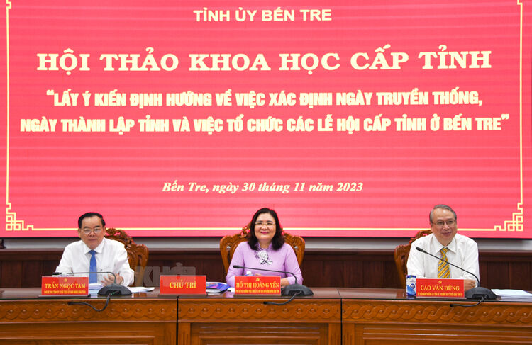 Phát biểu khai mạc hội thảo, Phó bí thư Thường trực Tỉnh ủy - Chủ tịch HĐND tỉnh Hồ Thị Hoàng Yến cho biết: Hội thảo khoa học cấp tỉnh nhằm tiếp thu tất cả các ý kiến của đại biểu để tổng hợp, thống nhất về mốc lịch sử thành lập tỉnh Bến Tre, từ đó có các hoạt động kỷ niệm trong thời gian tới. Đồng thời, chọn một ngày gắn với một sự kiện lịch sử đặc trưng, quan trọng, điển hình nhất của Bến Tre đề xuất với Ban Thường vụ Tỉnh ủy lãnh đạo, chỉ đạo ngành chức năng xây dựng hồ sơ đề nghị Thủ tướng Chính phủ ra quyết định công nhận theo Nghị định số 111/NĐ-CP của Chính phủ quy định về ngày thành lập, ngày truyền thống, ngày hưởng ứng của các bộ, ngành, địa phương, để Bến Tre chính thức có ngày kỷ niệm cấp quốc gia, được tổ chức định kỳ theo quy định.