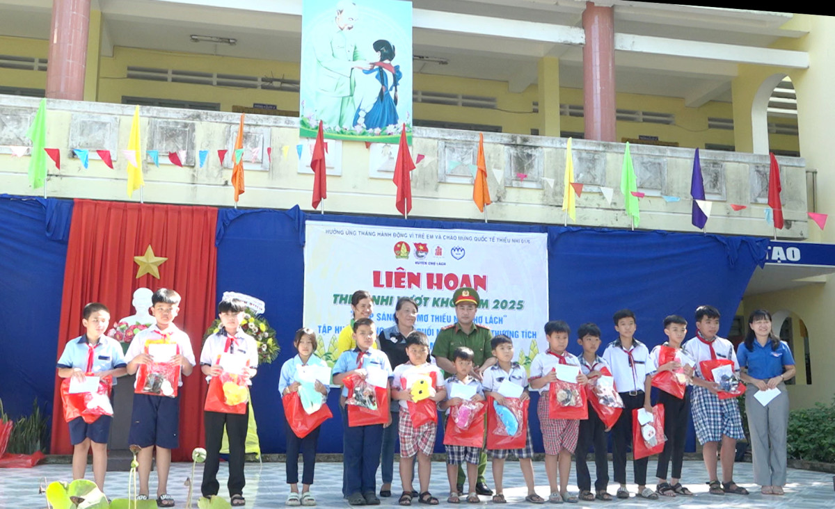 Nhằm động viên các em thiếu nhi có hoàn cảnh khó khăn trên địa bàn huyện vượt khó đạt kết quả cao trong học tập, rèn luyện và công tác Đội, Ban tổ chức trao 55 suất quà gồm 1 chiếc cặp, tập vở, dụng cụ học tập, mỗi suất có giá trị 300 ngàn đồng và trao 20 suất học bổng “Thắp sáng ước mơ”, mỗi suất 500 ngàn đồng do Siêu thị cây giống Welofarm hỗ trợ và Hội Nạn nhân chất độc da cam/dioxin và Bảo vệ quyền trẻ em huyện vận động mạnh thường quân hỗ trợ. Ngoài ra, các em thiếu nhi còn được tập huấn các kỹ năng phòng chống đuối nước, tai nạn thương tích và phòng chống bạo lực, xâm hại trẻ em.