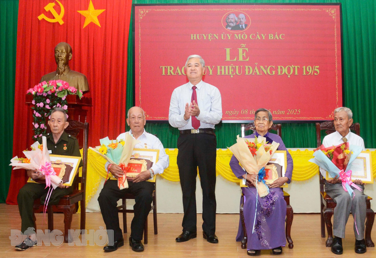 BDK - Ngày 8-5-2025, Ban Thường vụ Huyện ủy Mỏ Cày Bắc tổ chức lễ trao Huy hiệu Đảng cho 51 đảng viên đợt 19-5 nhân kỷ niệm 135 năm Ngày sinh Chủ tịch Hồ Chí Minh (19-5-1890 -19-5-2025). Đến dự có Trưởng ban Tổ chức Tỉnh ủy Nguyễn Văn Đức, đại diện các phòng ban, Huyện ủy, UBND huyện và 51 đảng viên nhận Huy hiệu Đảng.